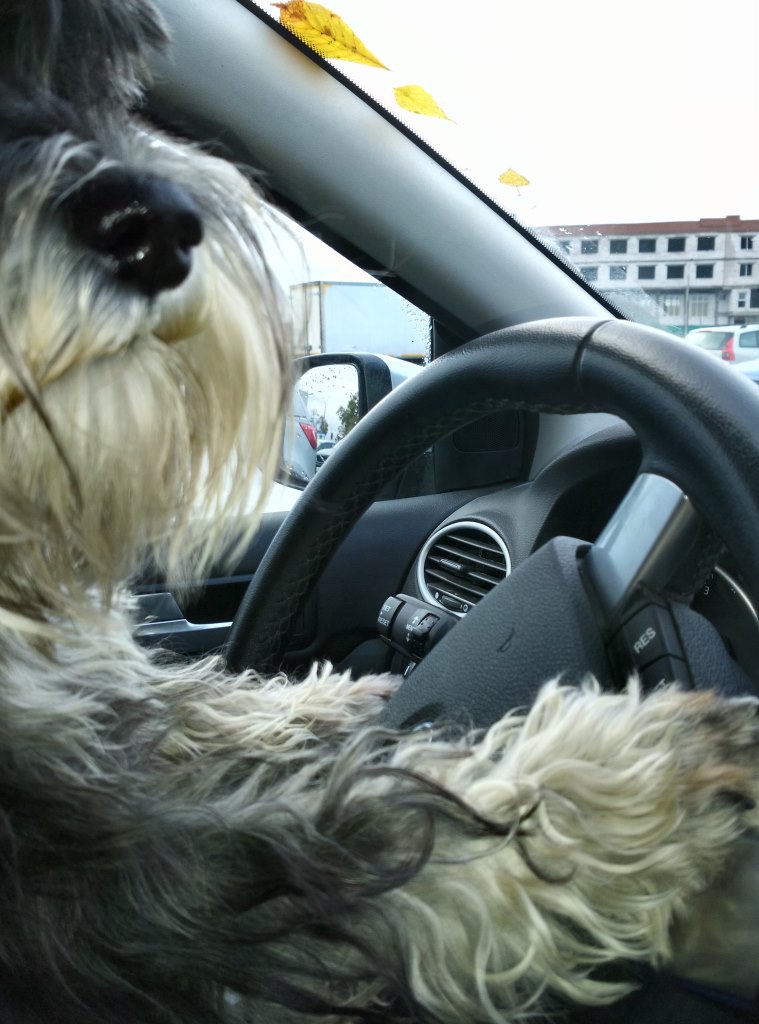 Очень любит ездить в машине и не важно - за рулем или в качестве штурмана