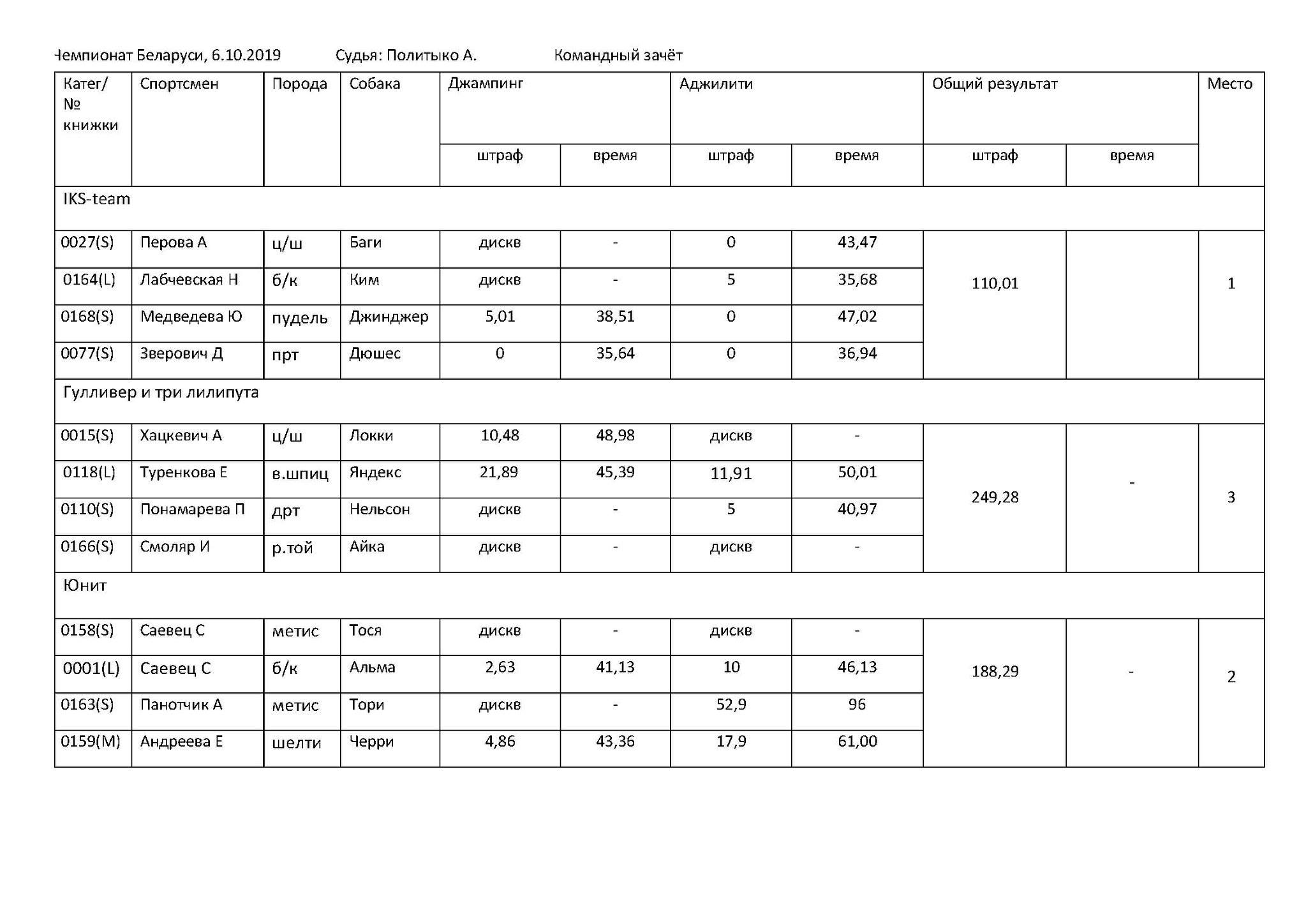 6 октября на площадке команды IKS-team прошёл чемпионат Беларуси и квалификационные соревнования по аджилити (FCI). Спасибо всем, что, несмотря на не майский день и прочие обстоятельства, всё состоялось, и прошло слаженно и оперативно! Отдельная благодарность ринговой бригаде и судьям: Денис Ольге, Жуковской Дарине, Андреевой Елизавете, Панотчик Алёне, Железнову Кириллу, Медведевой Юлии, Политыко Андрею и Хацкевич Анне, а также тем, кто помогал при расстановке трасс! Большое спасибо Грудиной Виктории, организатору площадки IKS-team , за сотрудничество и гостеприимство! И, конечно же, благодарность нашим спонсорам -- компании Purina!