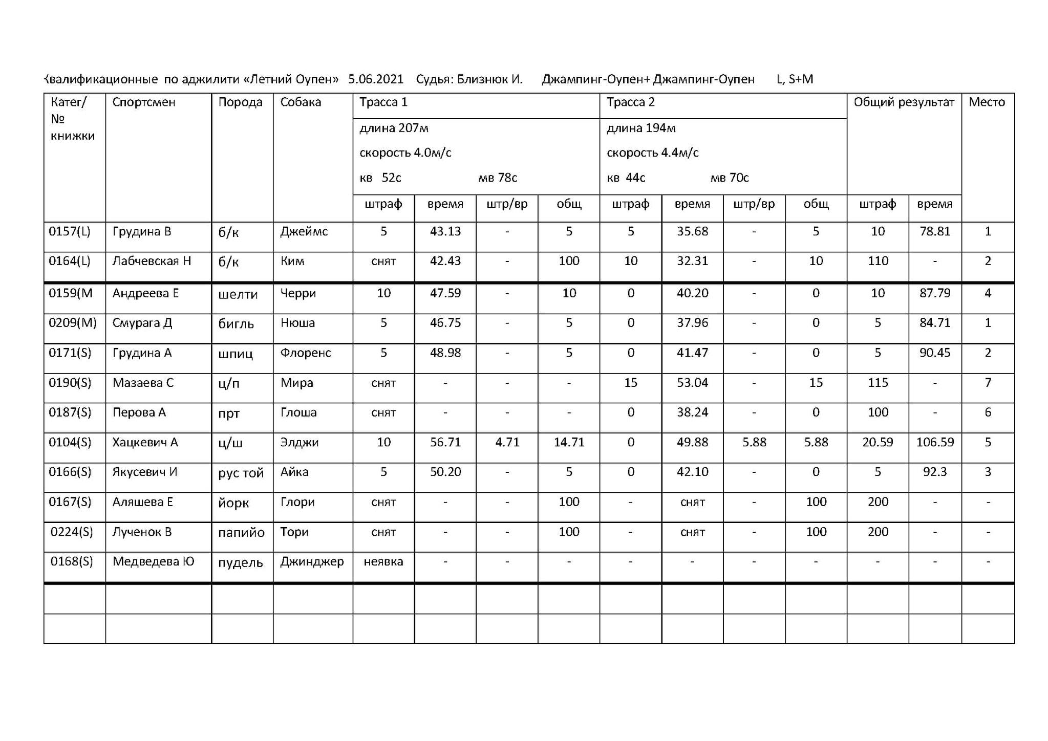 5 июня 2021 состоялись соревнования по аджилити FCI "Летний OPEN". Соревнования проходили в Ратомке на конкурном поле во время международной выставки собак. Очень здорово, что у нас снова была возможность провести соревнования в таком прекрасном месте! Отличный газон, просторная площадка и яркая атмосфера вокруг! Я надеюсь, что всем было приятно и полезно поучаствовать в таком мероприятии! Огромное спасибо тем, кто помогал в организации, в особенности Кирилл Железнов и ольга Красовская, судье соревнований Ирина Близнюк ,а также всем участникам за интересный спортивный день!