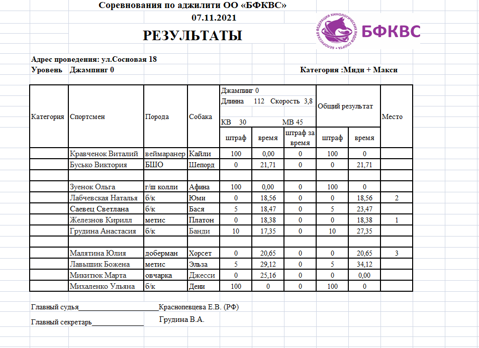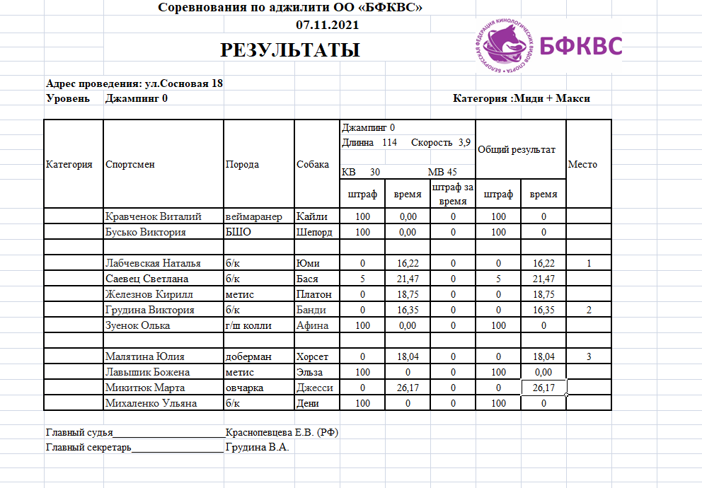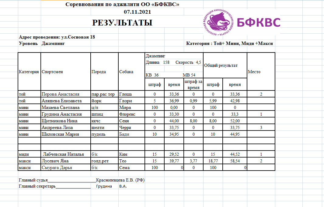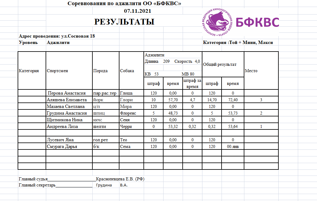 Поздравляем победителей !!! соревнований по аджилити под судейством Краснопевцевой Е.В.(Россия).