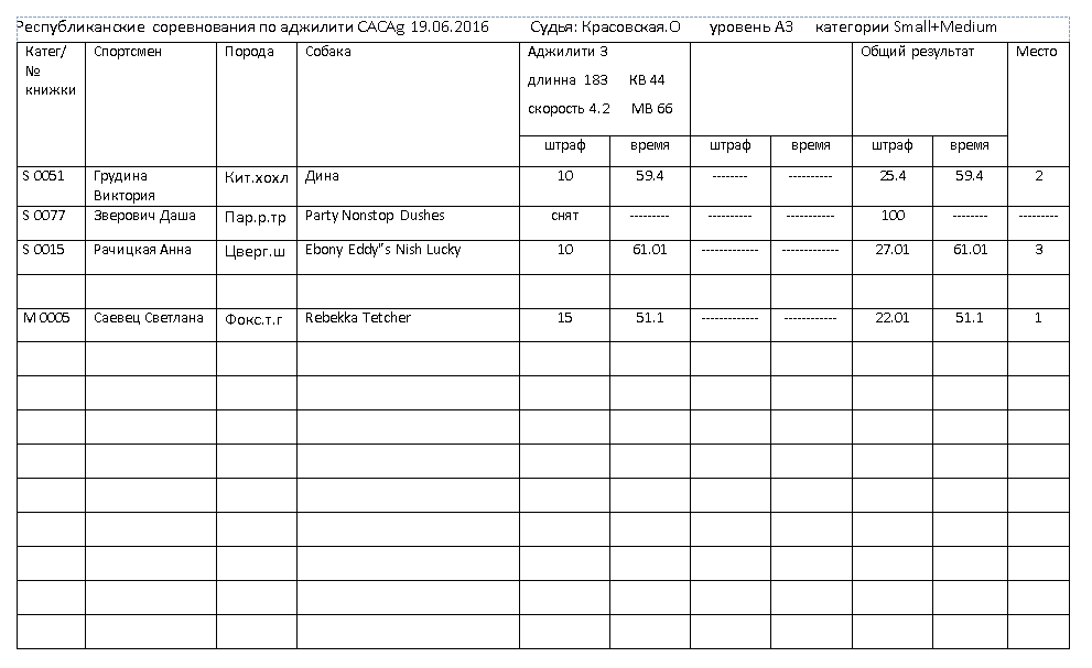 Победители "Республиканских соревнований по аджилити CACAg"
