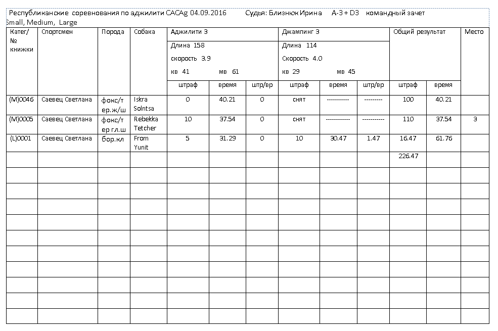 04.09.2016г командой IKS-team были проведены Республиканские соревнования по аджилити CACag совместно с рейтинговыми соревнованиями.