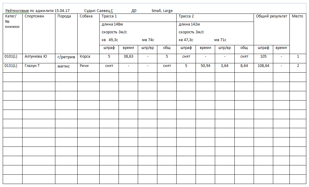 Протоколы соревнований