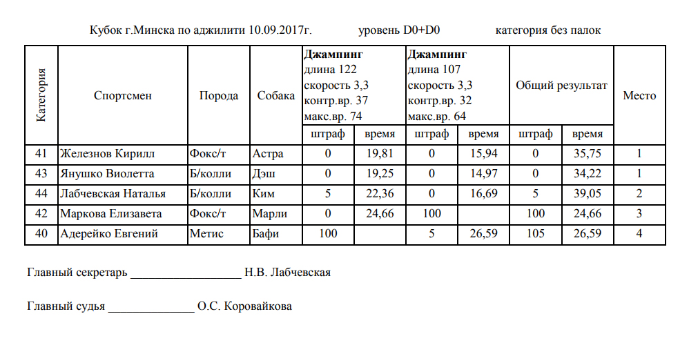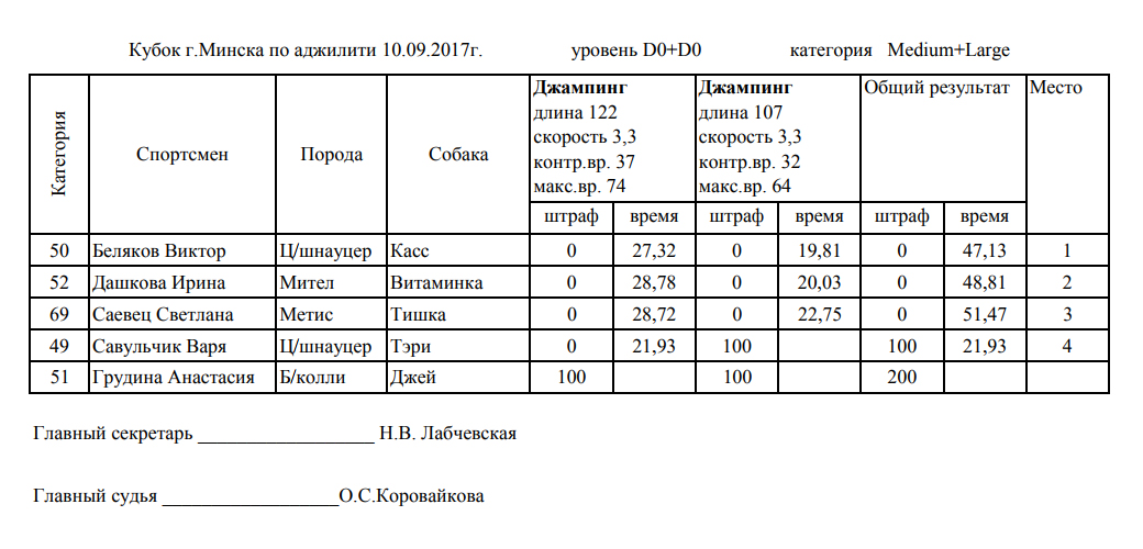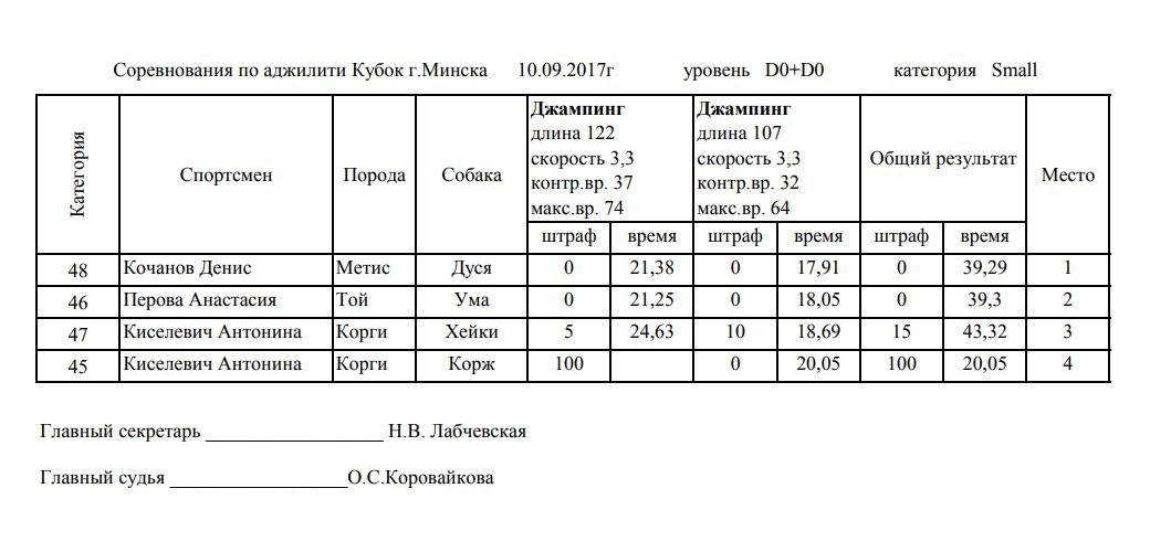 Протоколы соревнований: