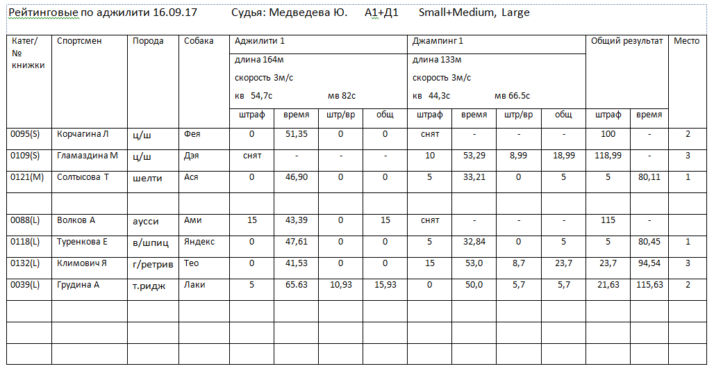 Судья рейтинговых соревнований – Медведева Юлия