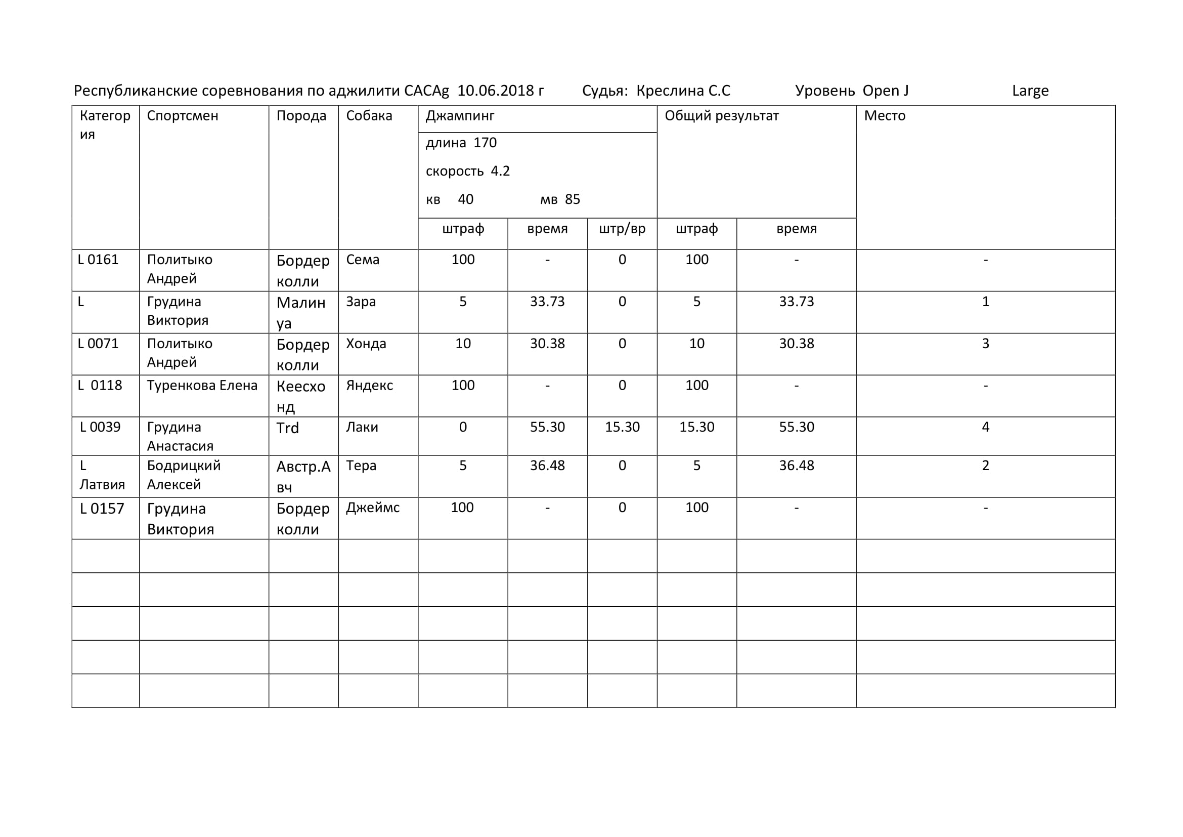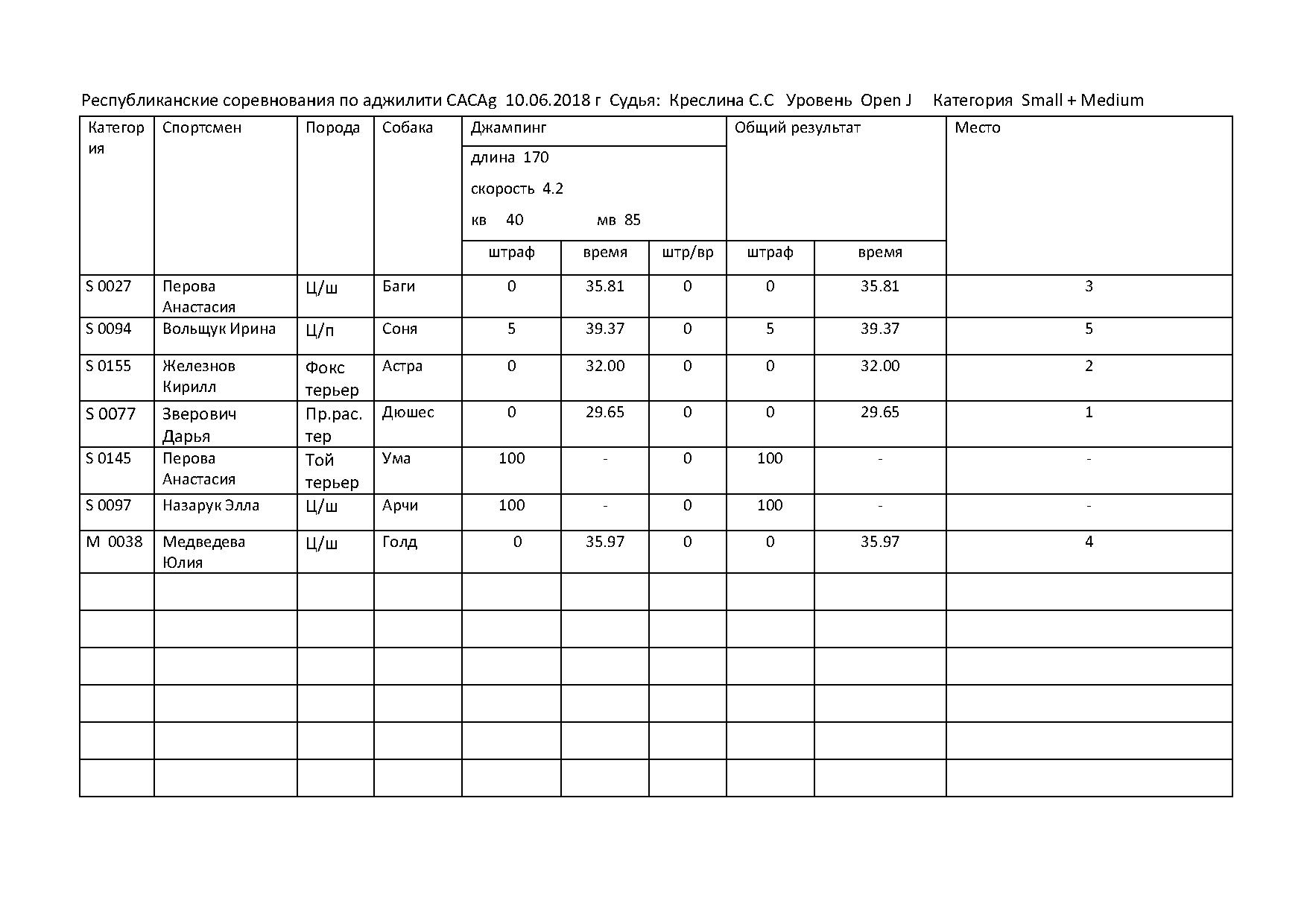 Поздравляем призеров !!! Республиканских соревнований по аджилити CACAg (FCI)