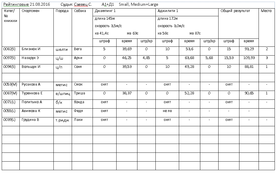 21 августа 2016 г. командой "Юнит" были проведены рейтинговые соревнования по аджилити.
