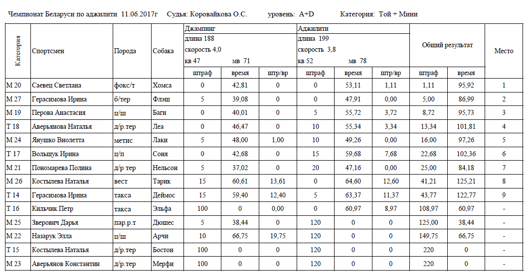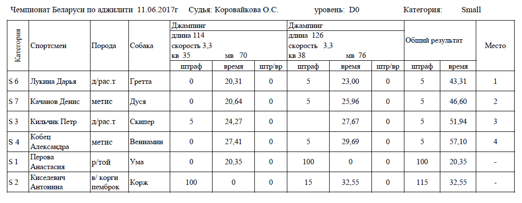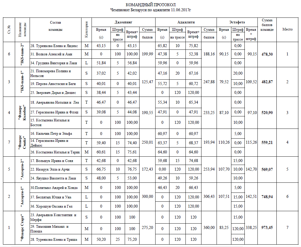 Протоколы соревнований: