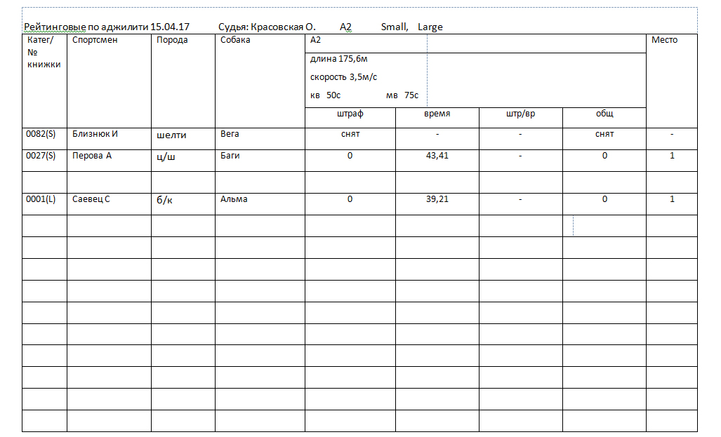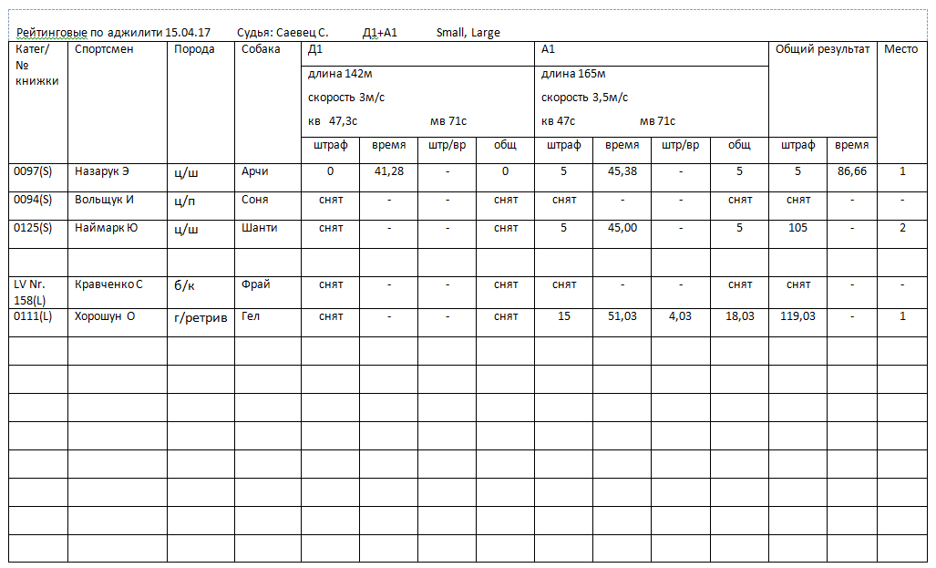 Протоколы соревнований