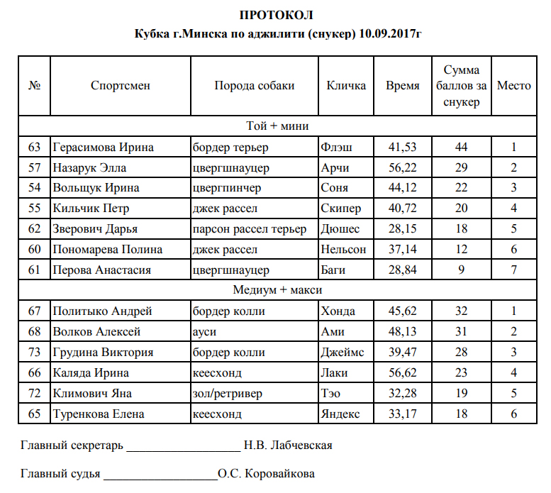 Протоколы соревнований: