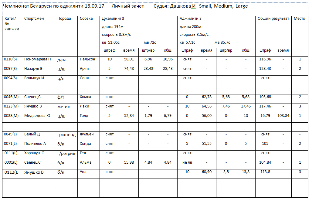 Чемпионат Беларуси БКО (FCI) по аджилити 16 сентября 2017 г.