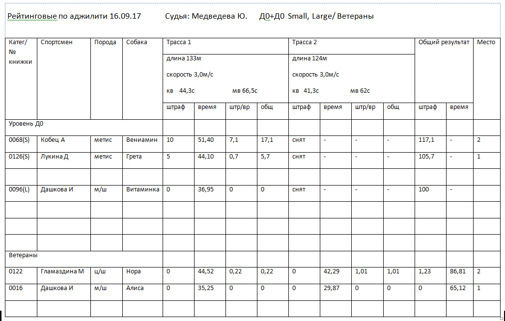 Судья рейтинговых соревнований – Медведева Юлия